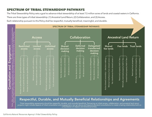 For more information and to read the Tribal Stewardship Policy and explore the Toolkit, please visit https://resources.ca.gov/Initiatives/Tribalaffairs/TribalStewardshipPolicyAndToolkit.